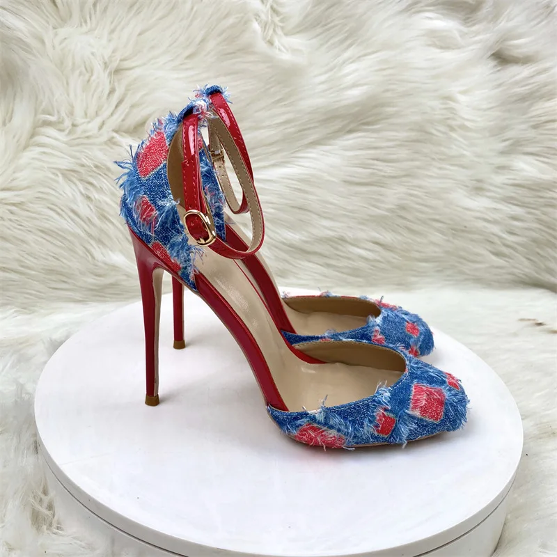 Red Bottom Denim Round Toe Stilettos