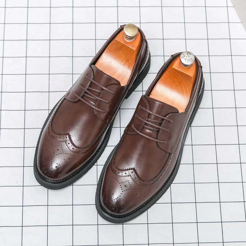 Men's Dress Shoes Italian Style Formal Genuine Leather Shoes Lace-up Handmade Loafers Business Formal Oxford Shoes for Men