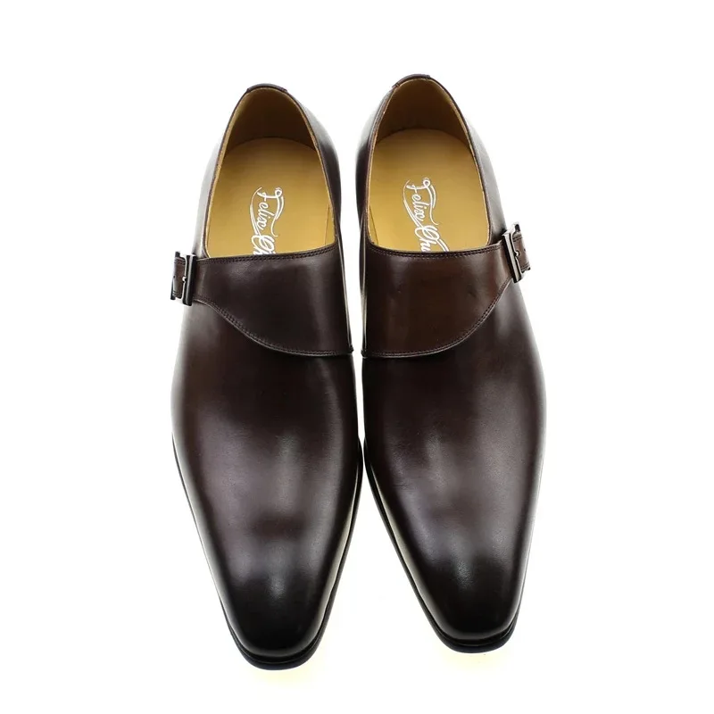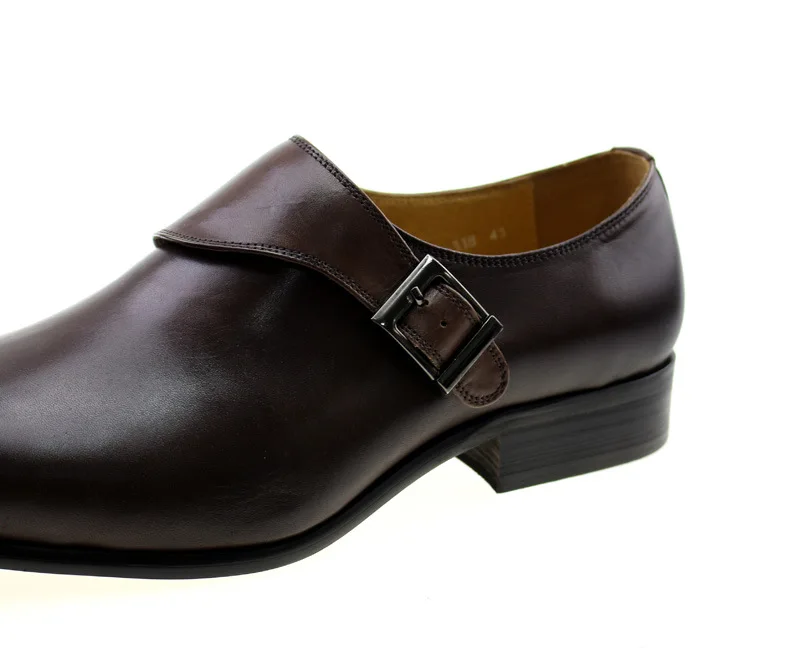 Single Button Pointed Toe Slip-On Genuine Leather Shoes