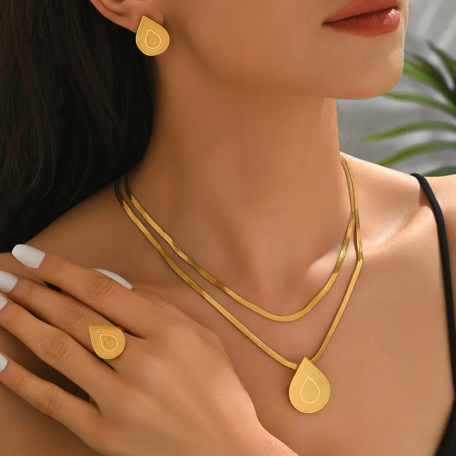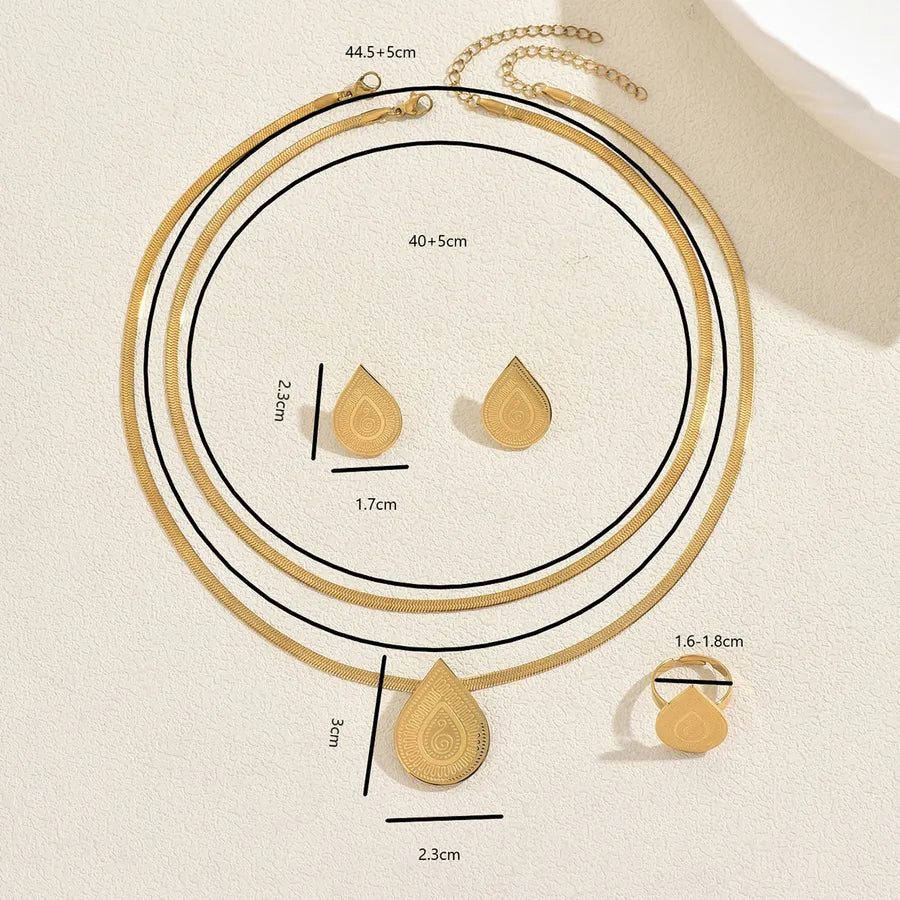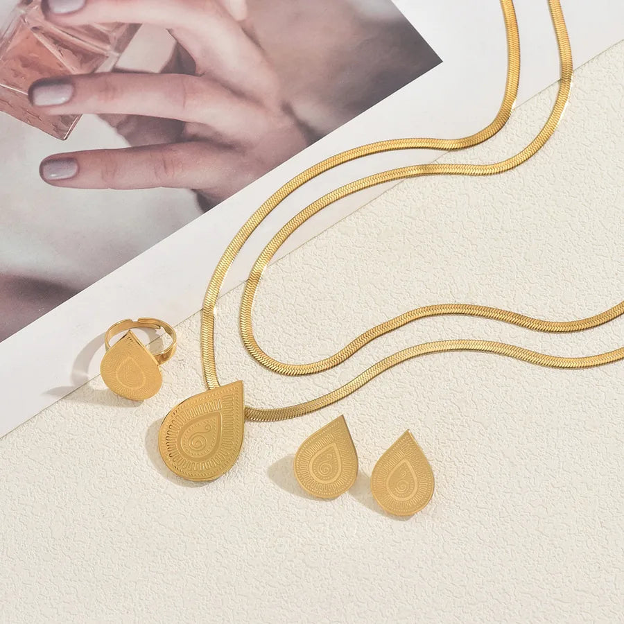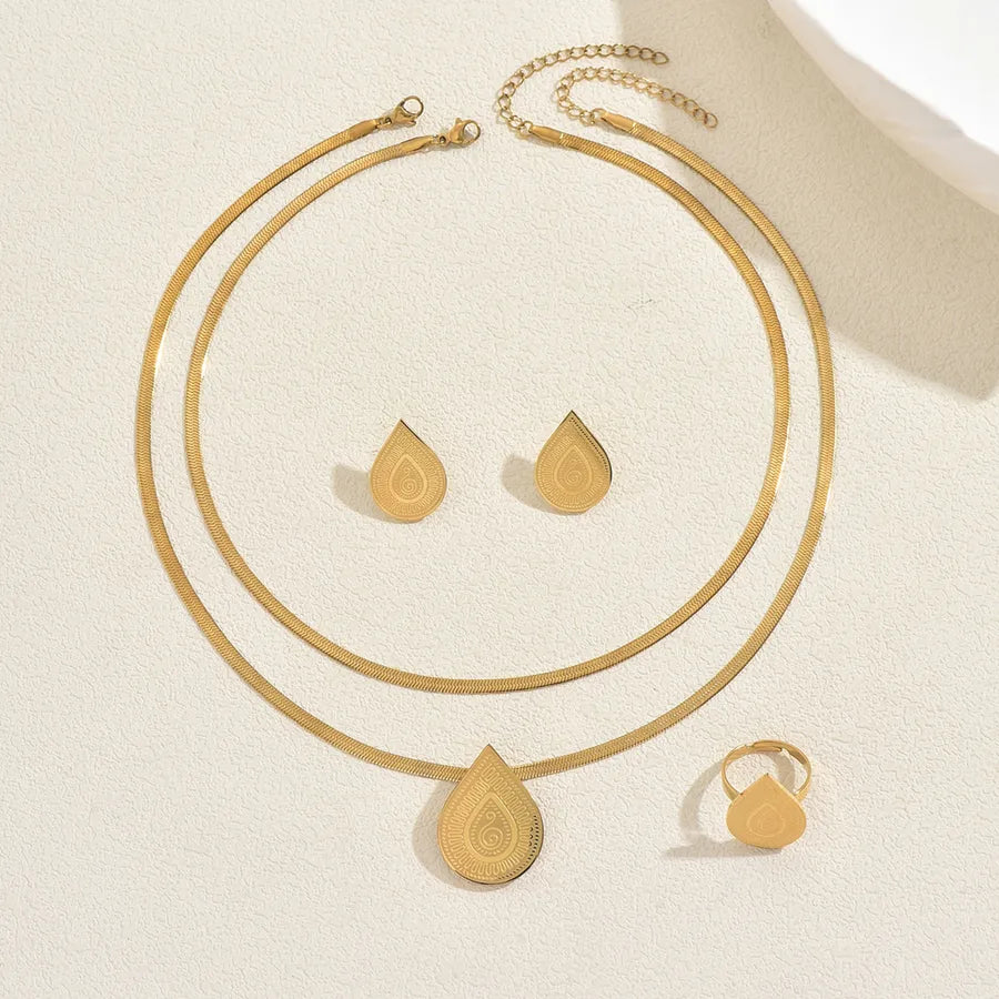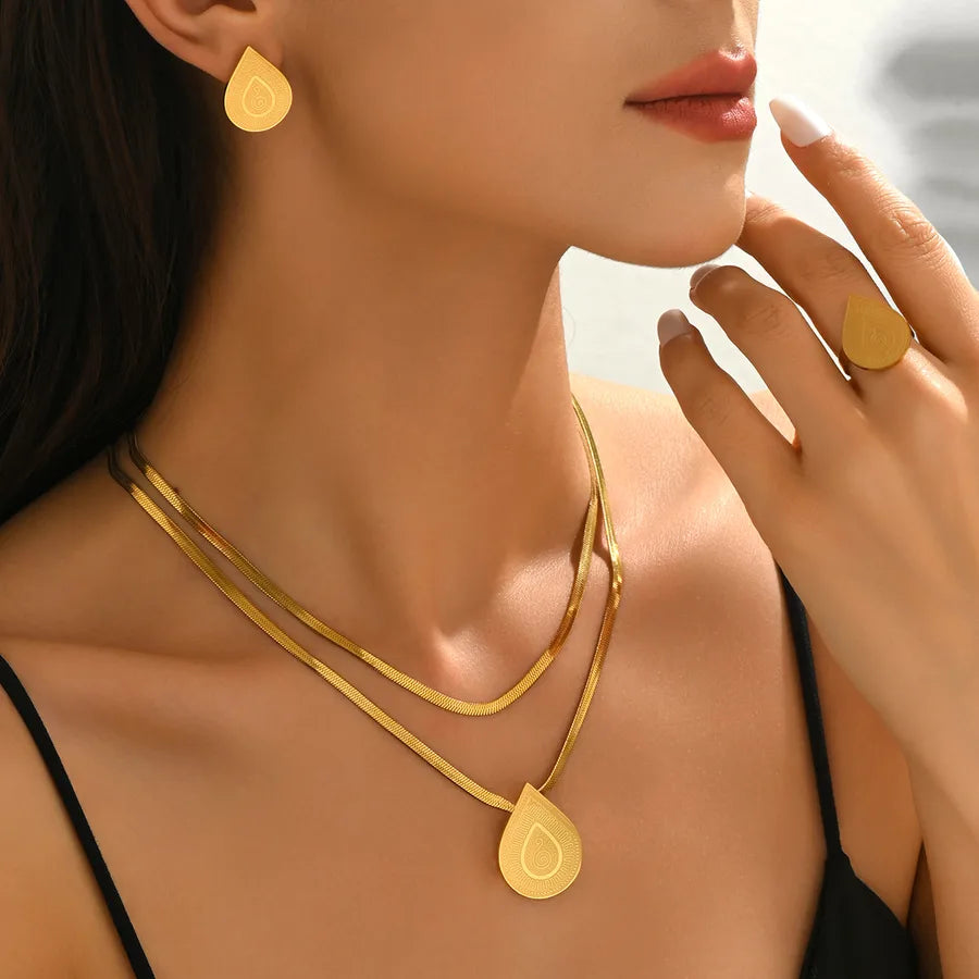 18K Real Gold Plated Stainless Steel Water Drop Style Ins jewellery Set