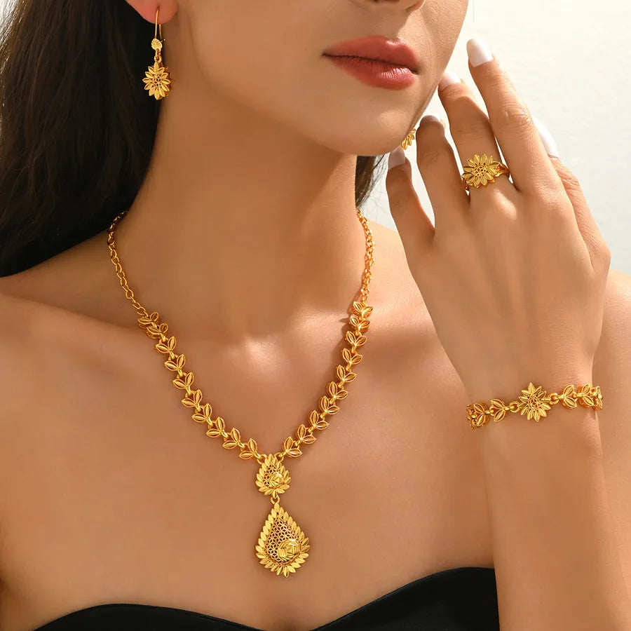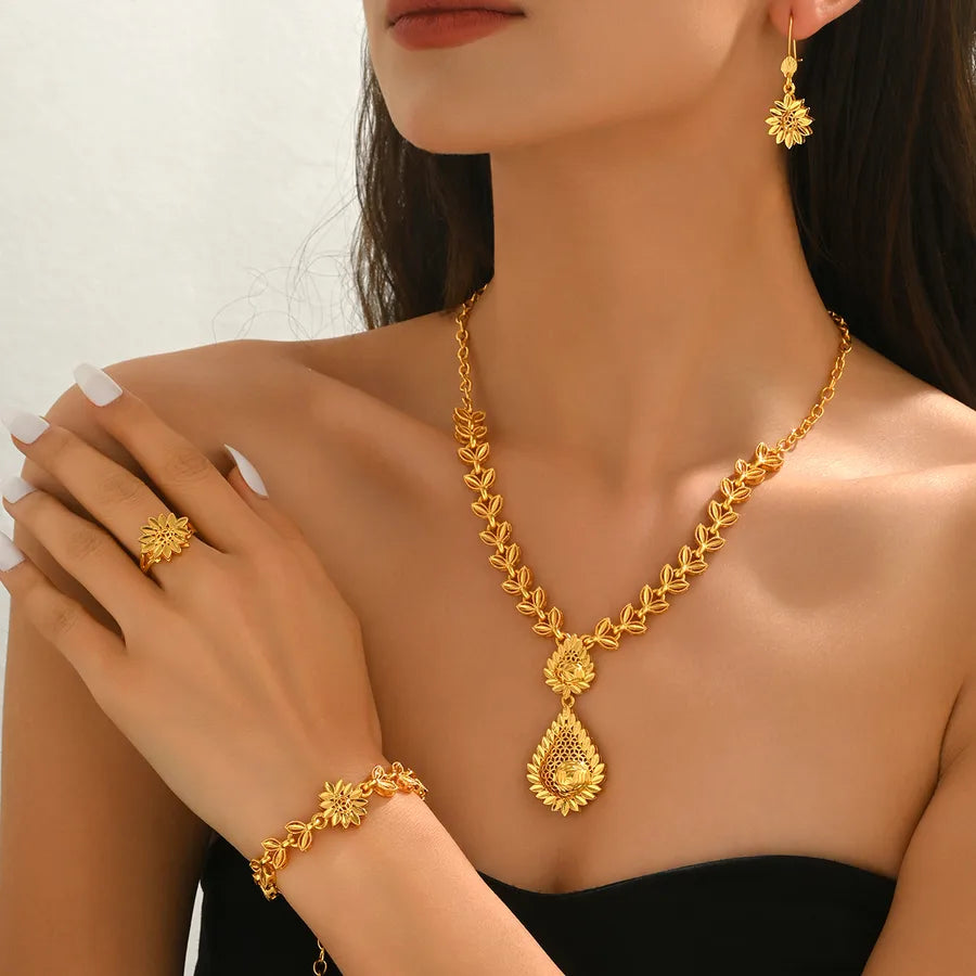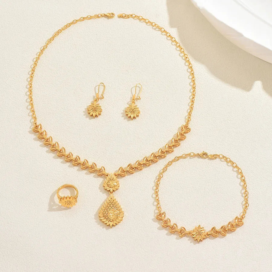 18K Real Gold Plated Hollow Sunflower Geometric Water Drop Elegant set
