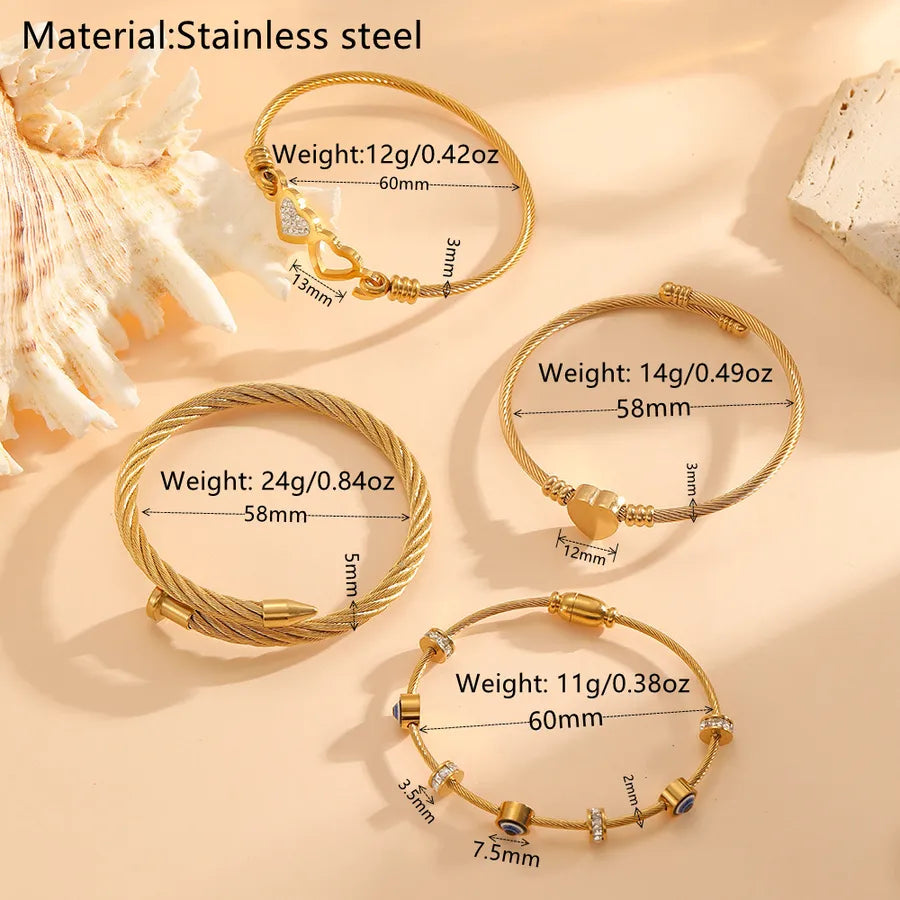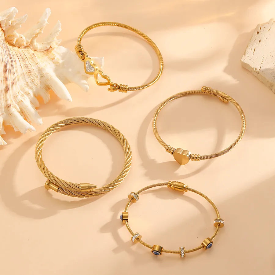 304 Stainless Steel Material Vacuum Electroplating Plated 18K Real Gold Multi-style Love Heart Inlaid Diamond Twist Versatile Eye Style Bracelet for Women