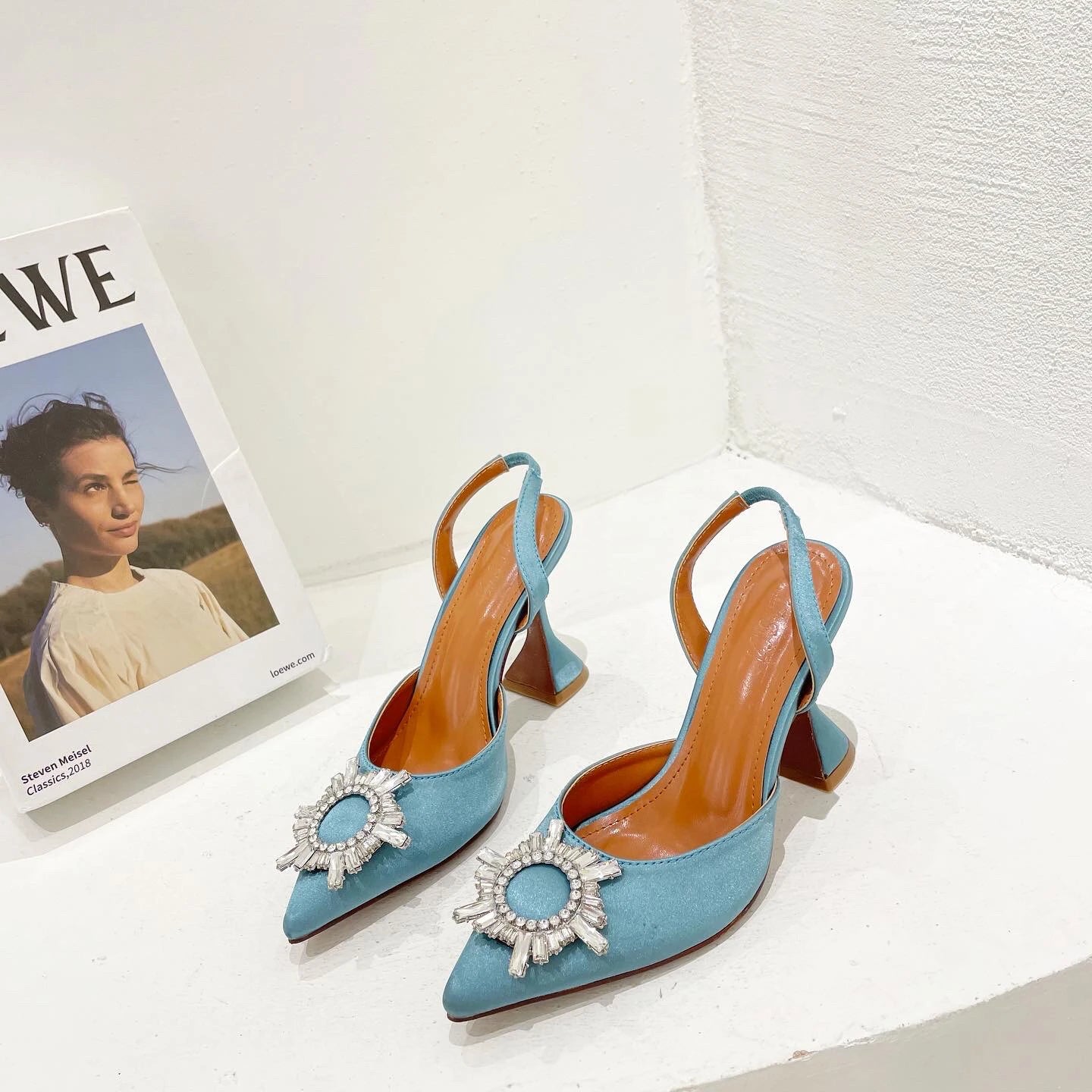 Brand Women Pumps Crystal Vest High Heels Summer Bridal Shoes Comfort Triangle Heel Party Wedding Shoes 2025