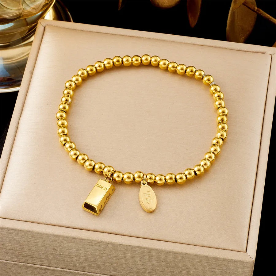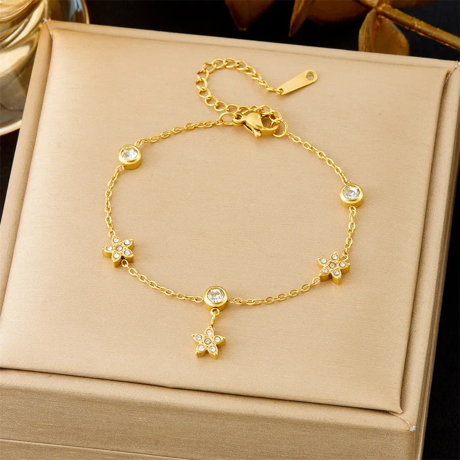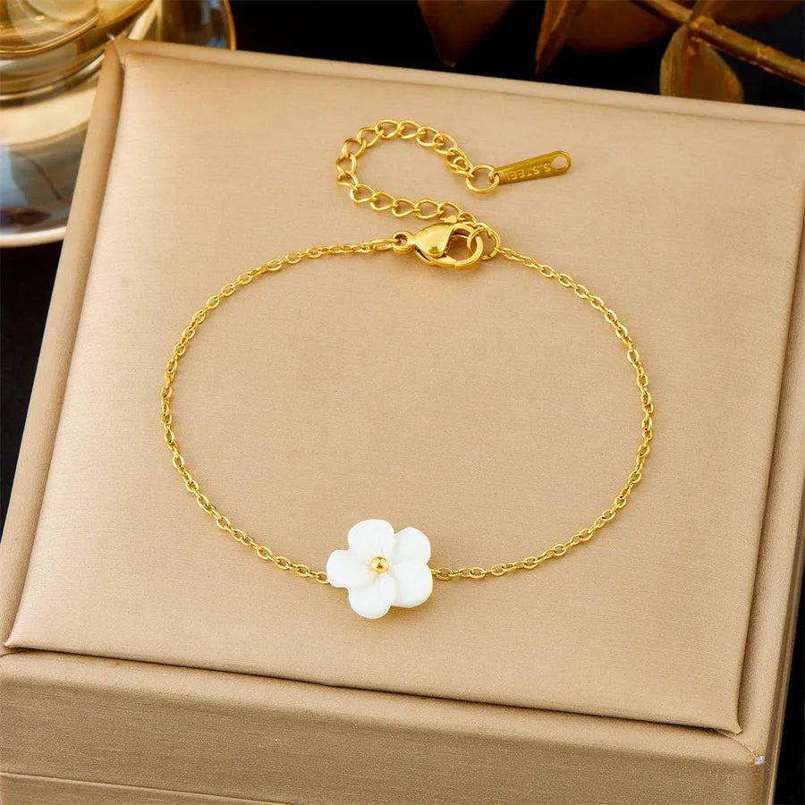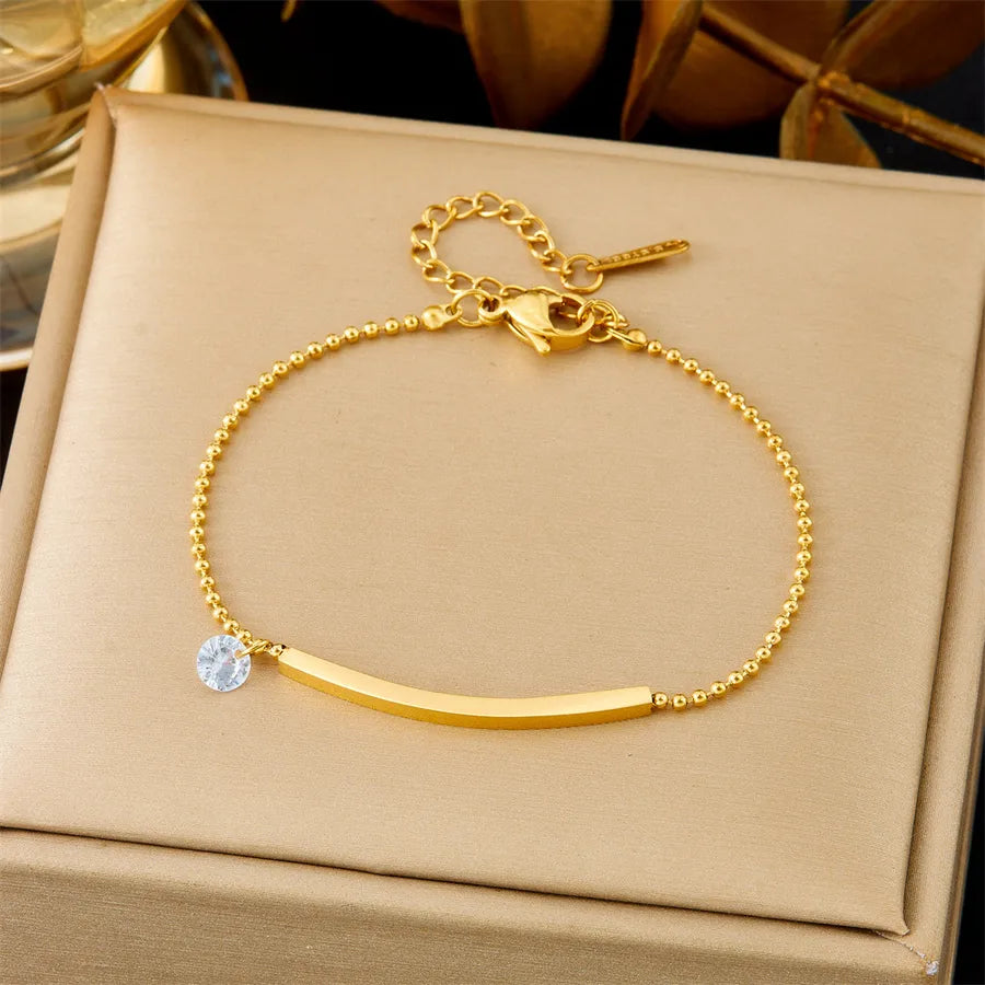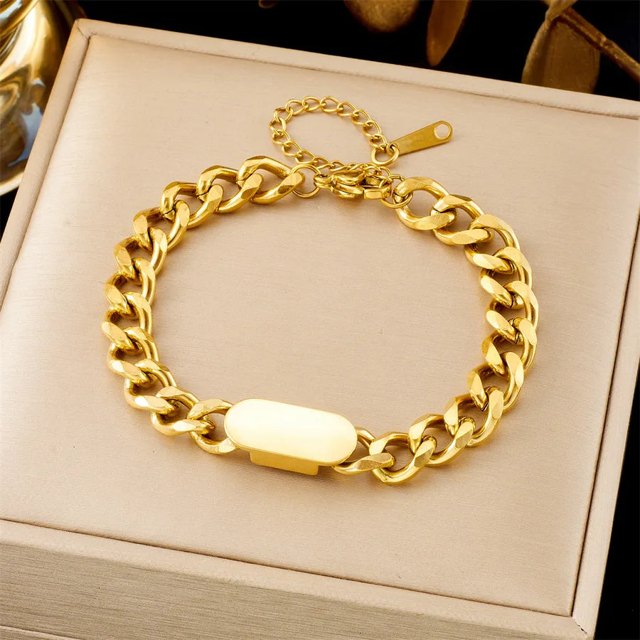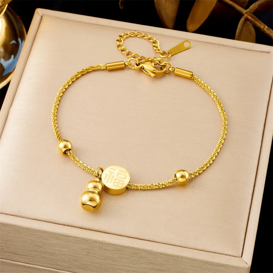 Fashionable Titanium Steel Bracelet Women's Gold Color Four Leaf Clover Non-Fading Luxury Simple Hand Chain Jewelry Accessory
