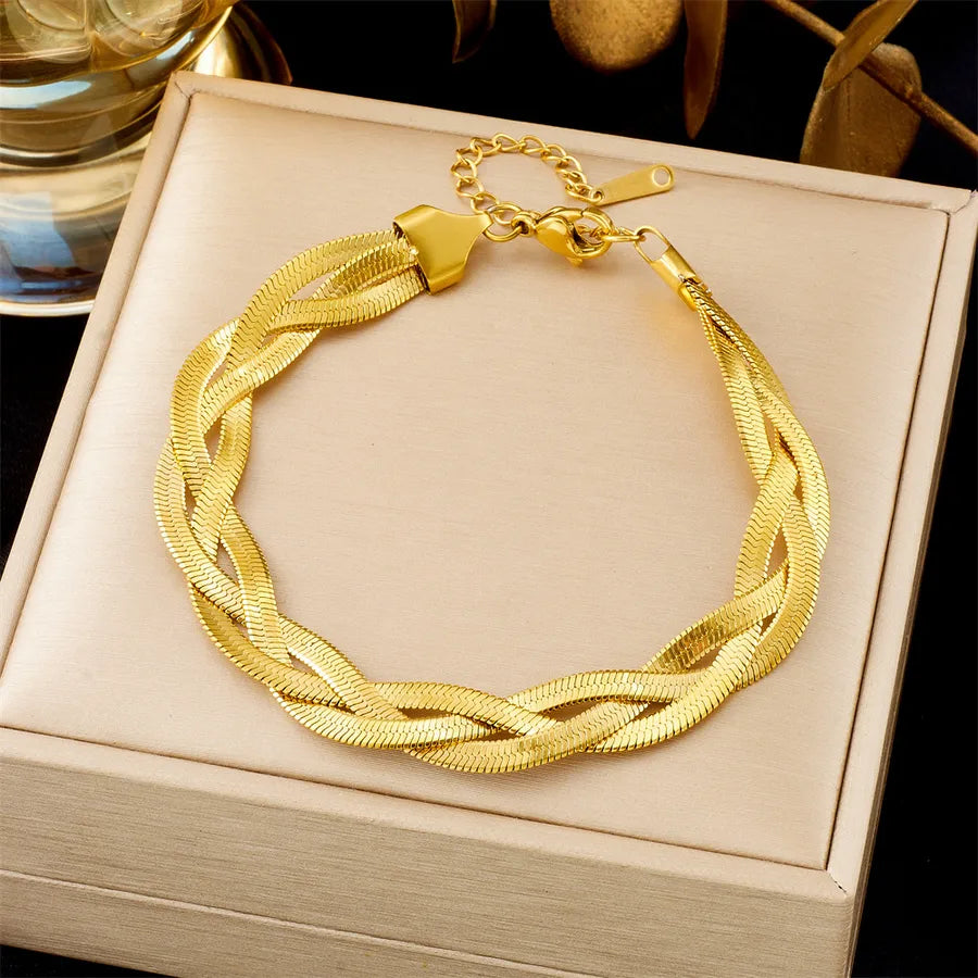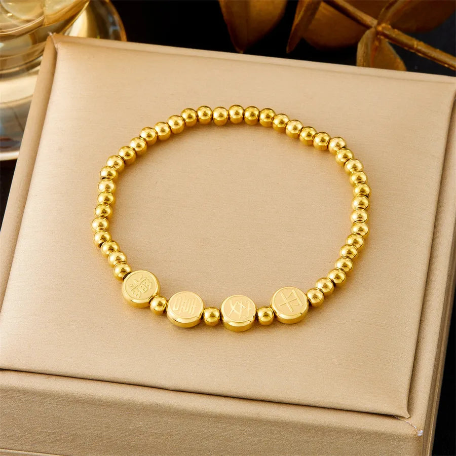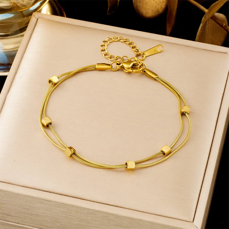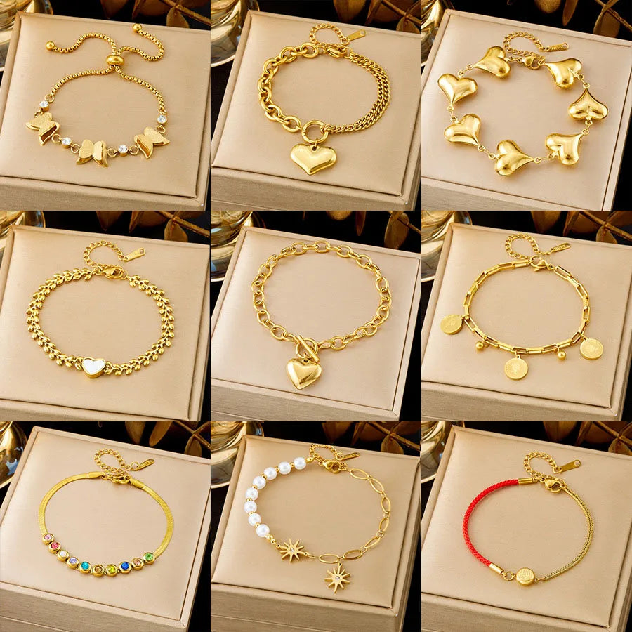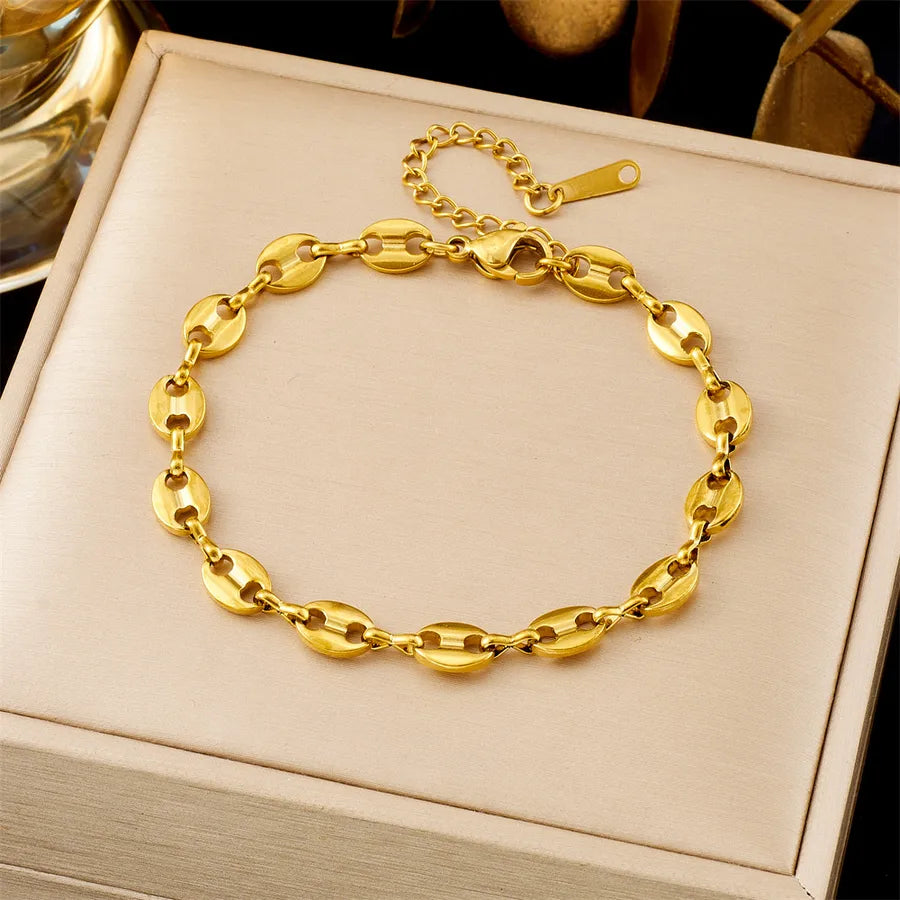 Fashionable Titanium Steel Bracelet Women's Gold Color Four Leaf Clover Non-Fading Luxury Simple Hand Chain Jewelry Accessory