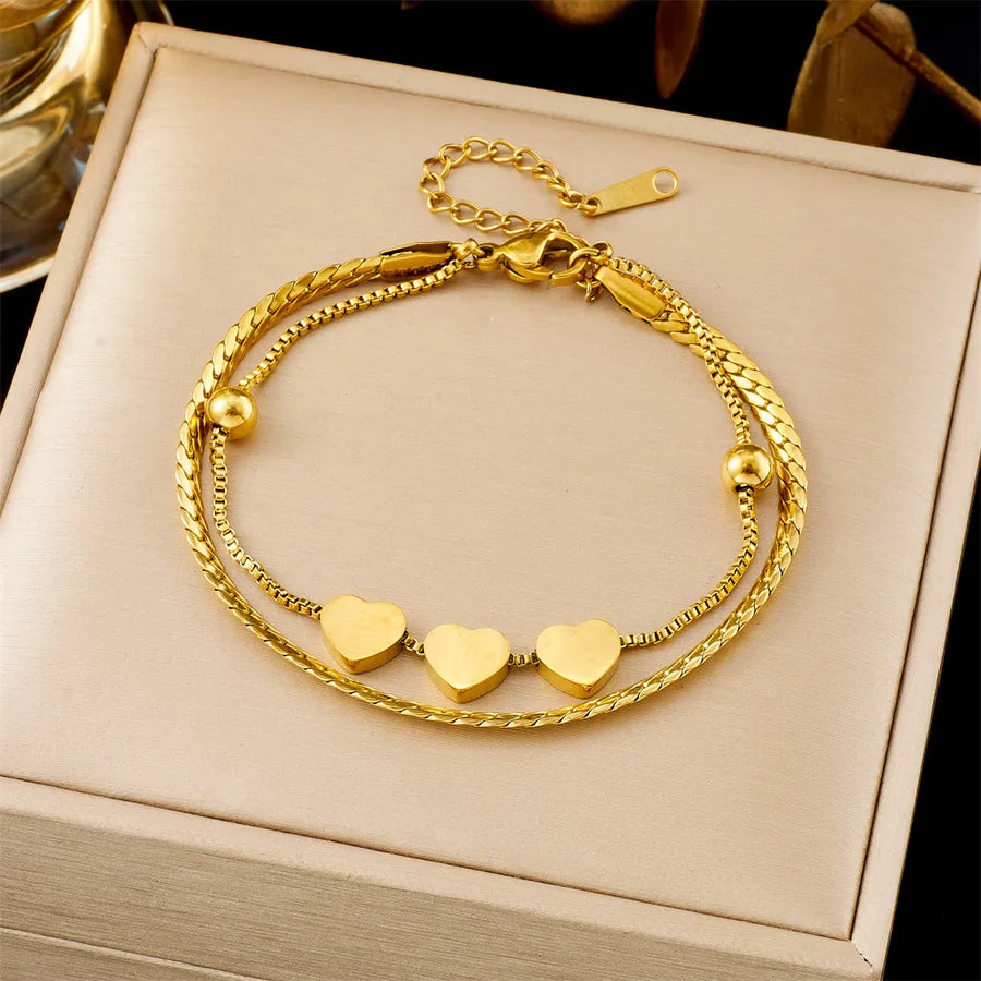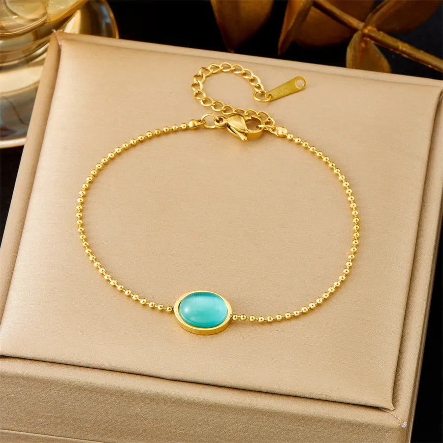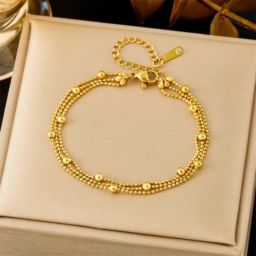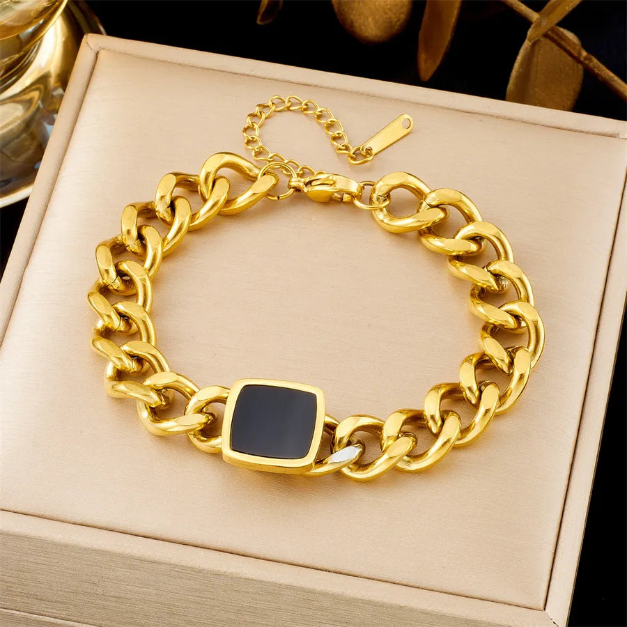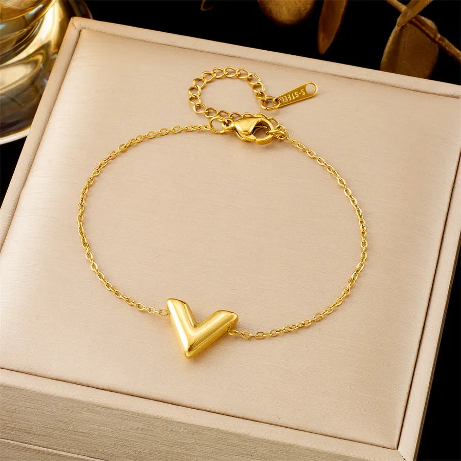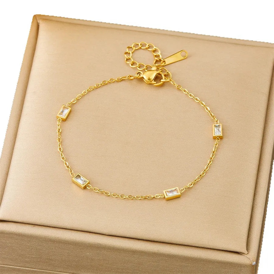 Fashionable Titanium Steel Bracelet Women's Gold Color Four Leaf Clover Non-Fading Luxury Simple Hand Chain Jewelry Accessory