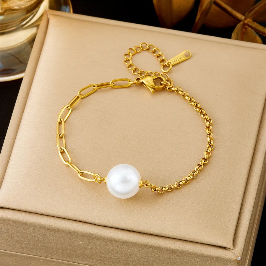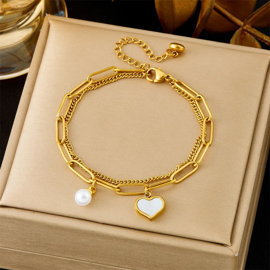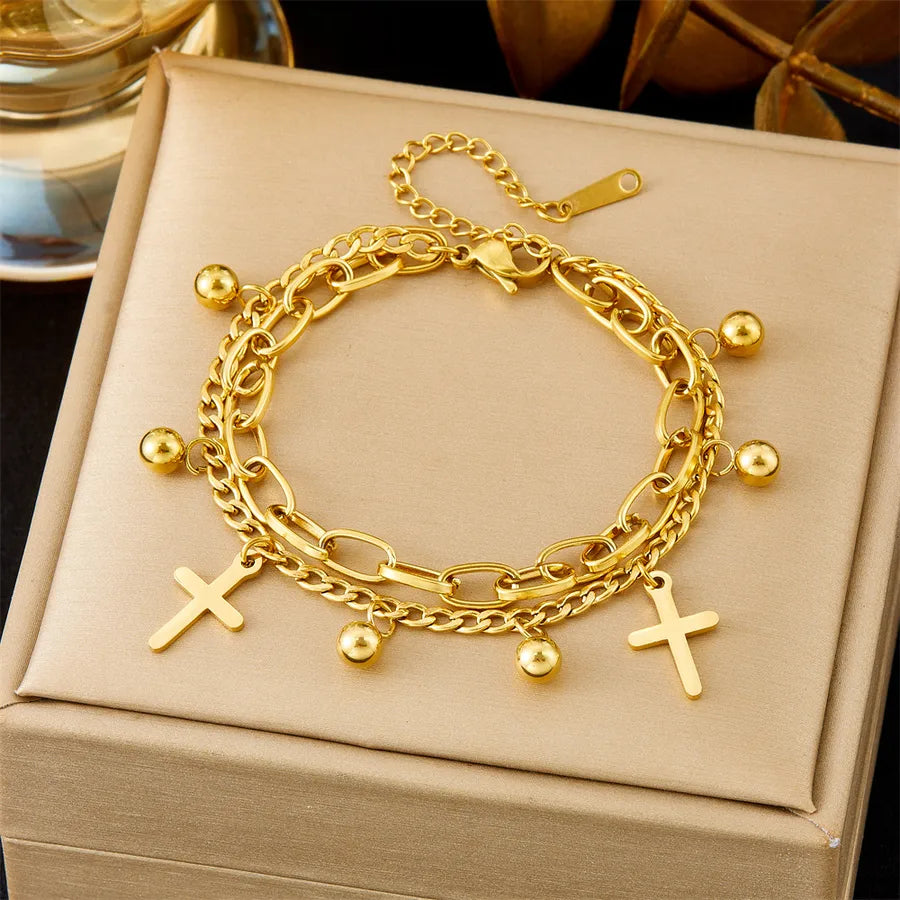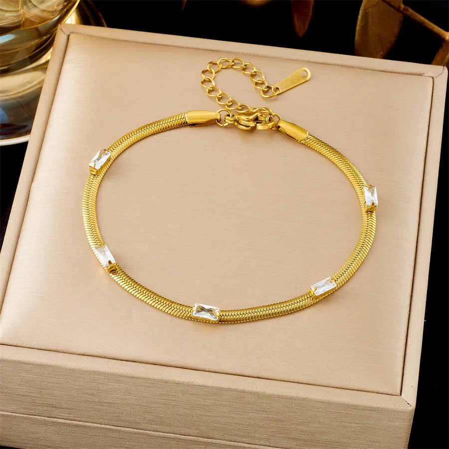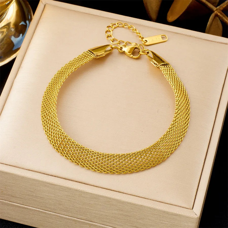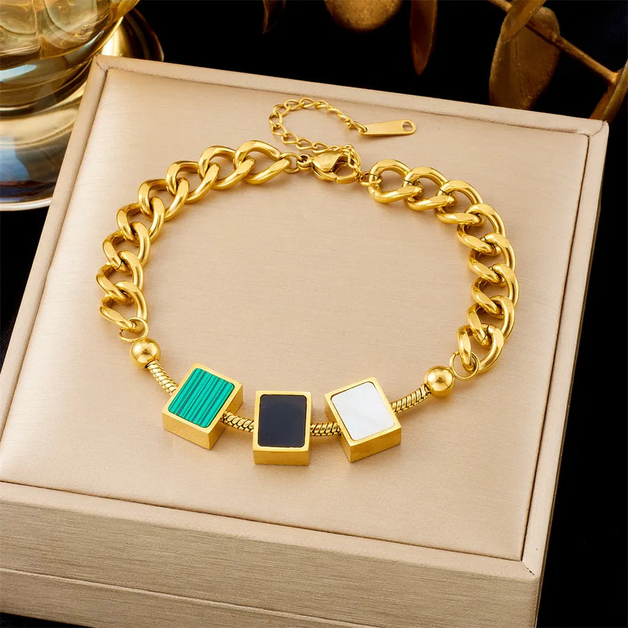 Fashionable Titanium Steel Bracelet Women's Gold Color Four Leaf Clover Non-Fading Luxury Simple Hand Chain Jewelry Accessory