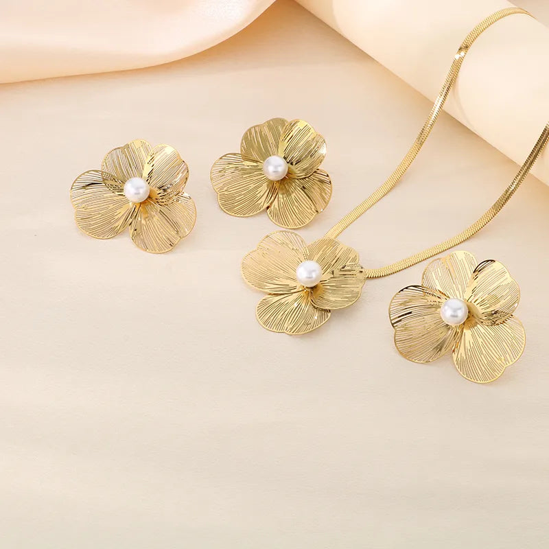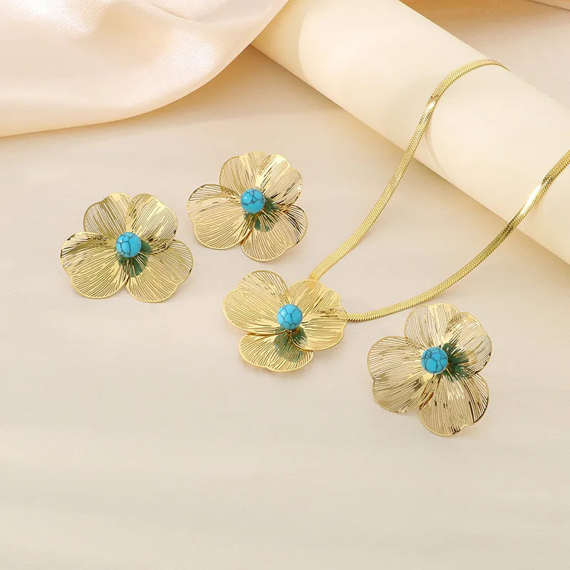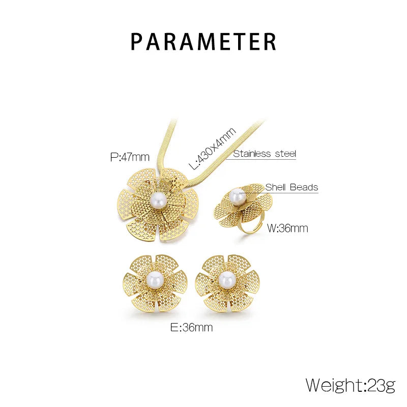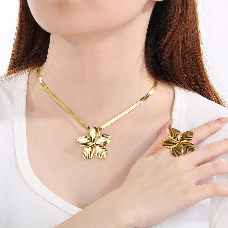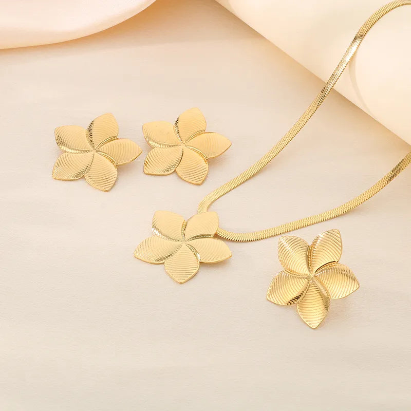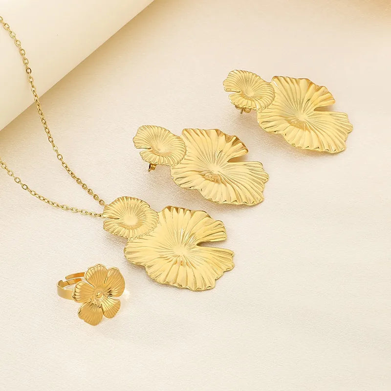 Ion Plating (IP) 18K Gold Plated Flower 304 Stainless Steel Elegant Vintage Style Waterproof Non Tarnish Rings Earrings Necklace