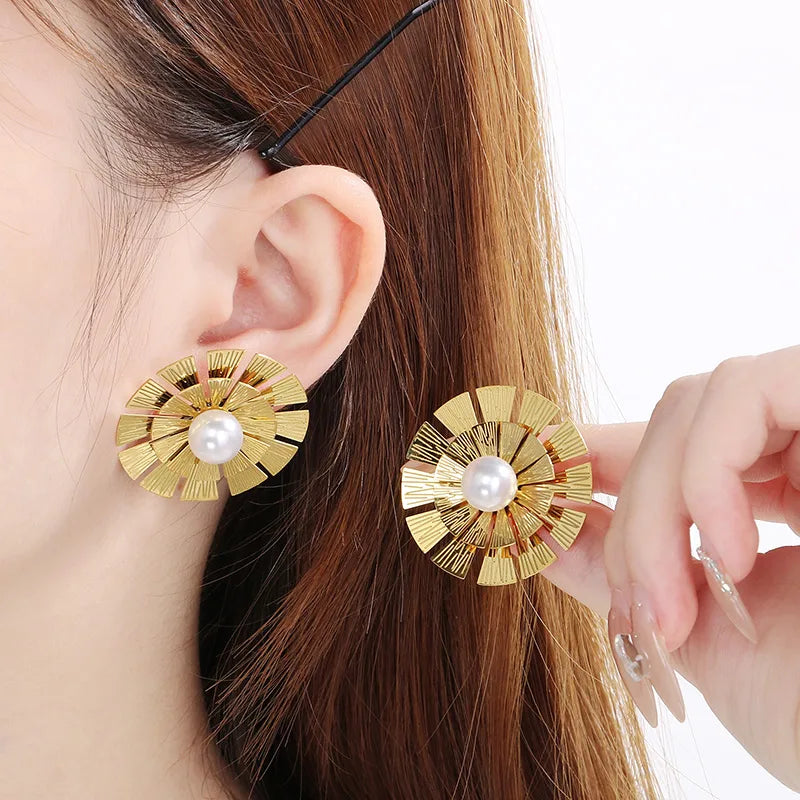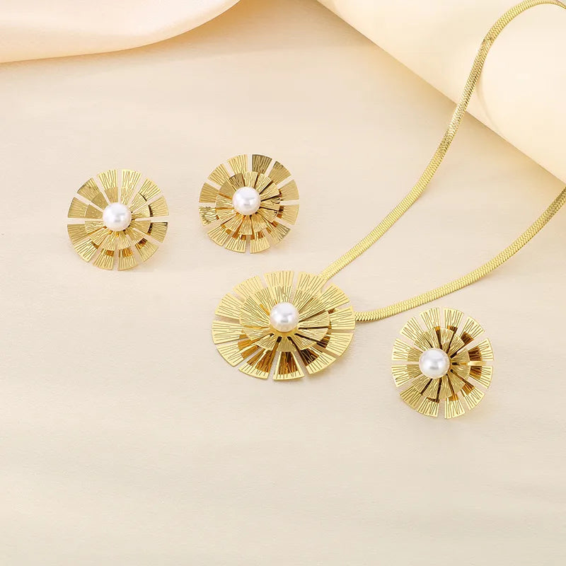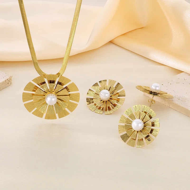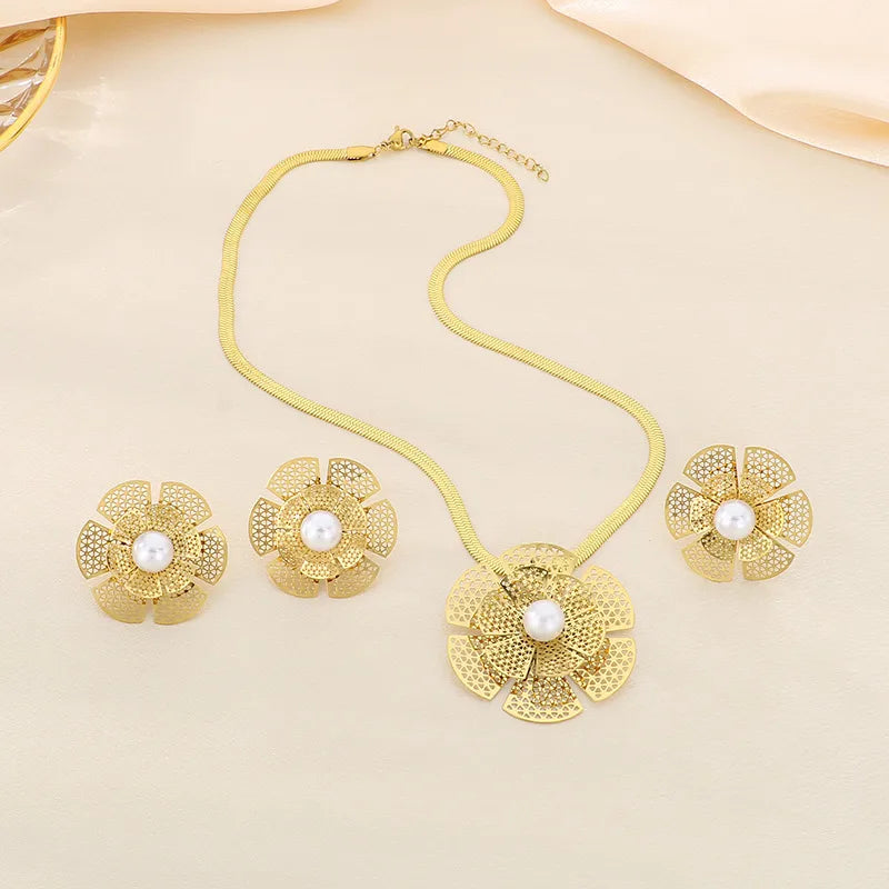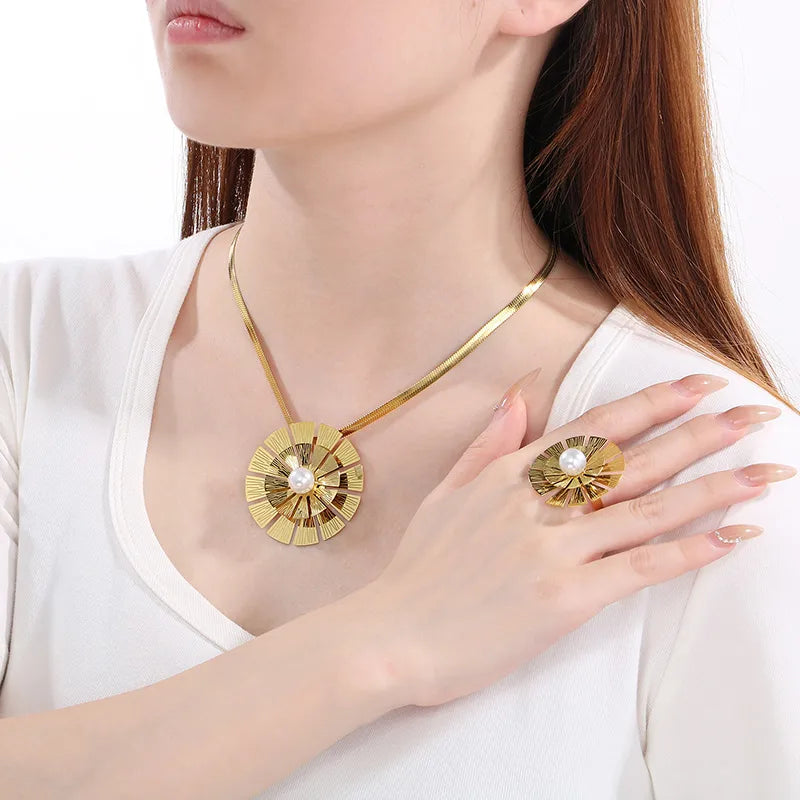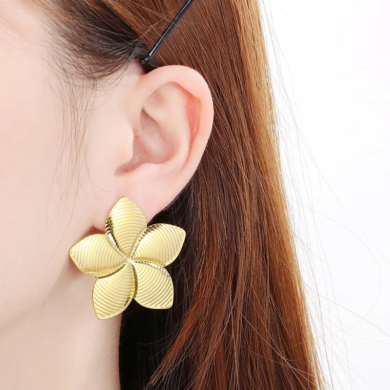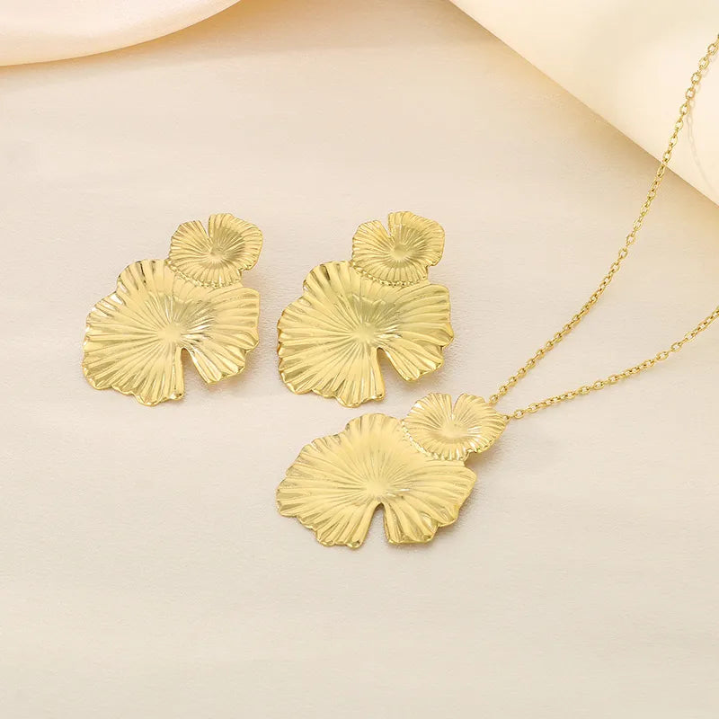 Ion Plating (IP) 18K Gold Plated Flower 304 Stainless Steel Elegant Vintage Style Waterproof Non Tarnish Rings Earrings Necklace