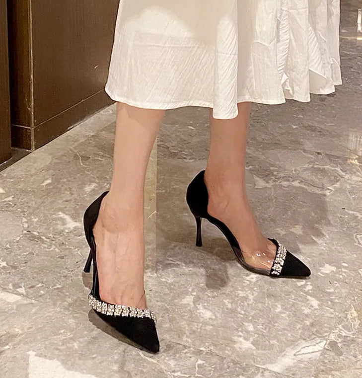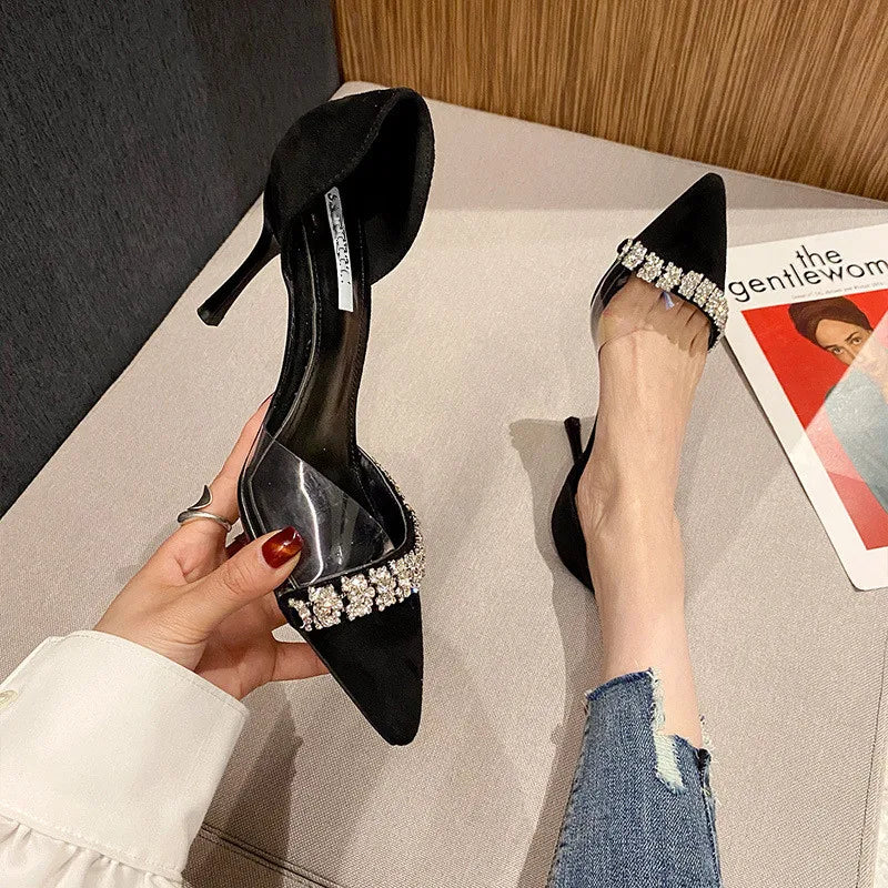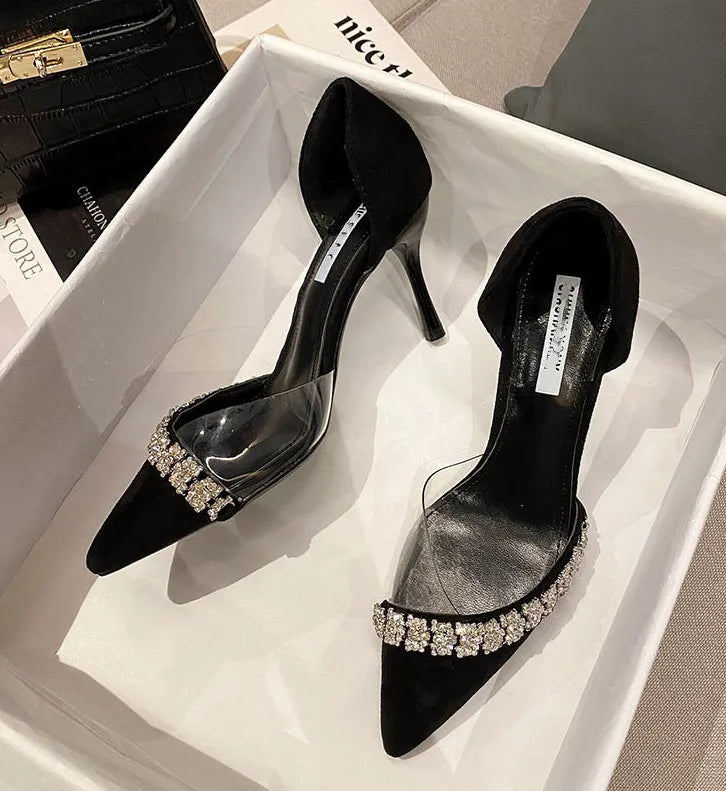New Styles Sexy Wedding Bridal Women Pumps Dress Shoes Ladies Shining Dancing Party Banquet Office Rhinestone Transparent Heels
