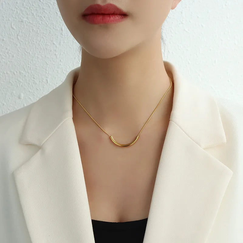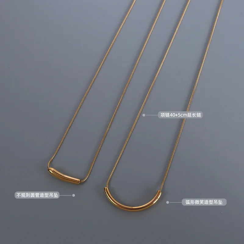 P678-Gold Arc Necklace-40+5cm - £8.43 GBP