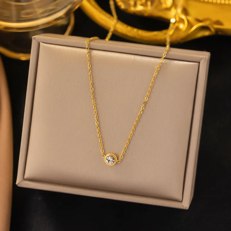 [Xlh6132] Single Diamond Four-Leaf Flower Gold