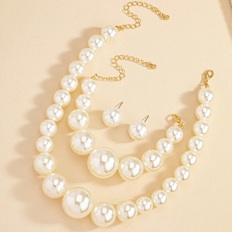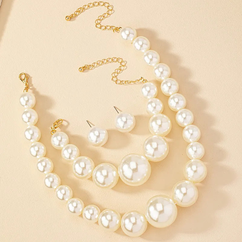 retro luxurious french style solid color imitation pearl wholesale bracelets earrings necklace